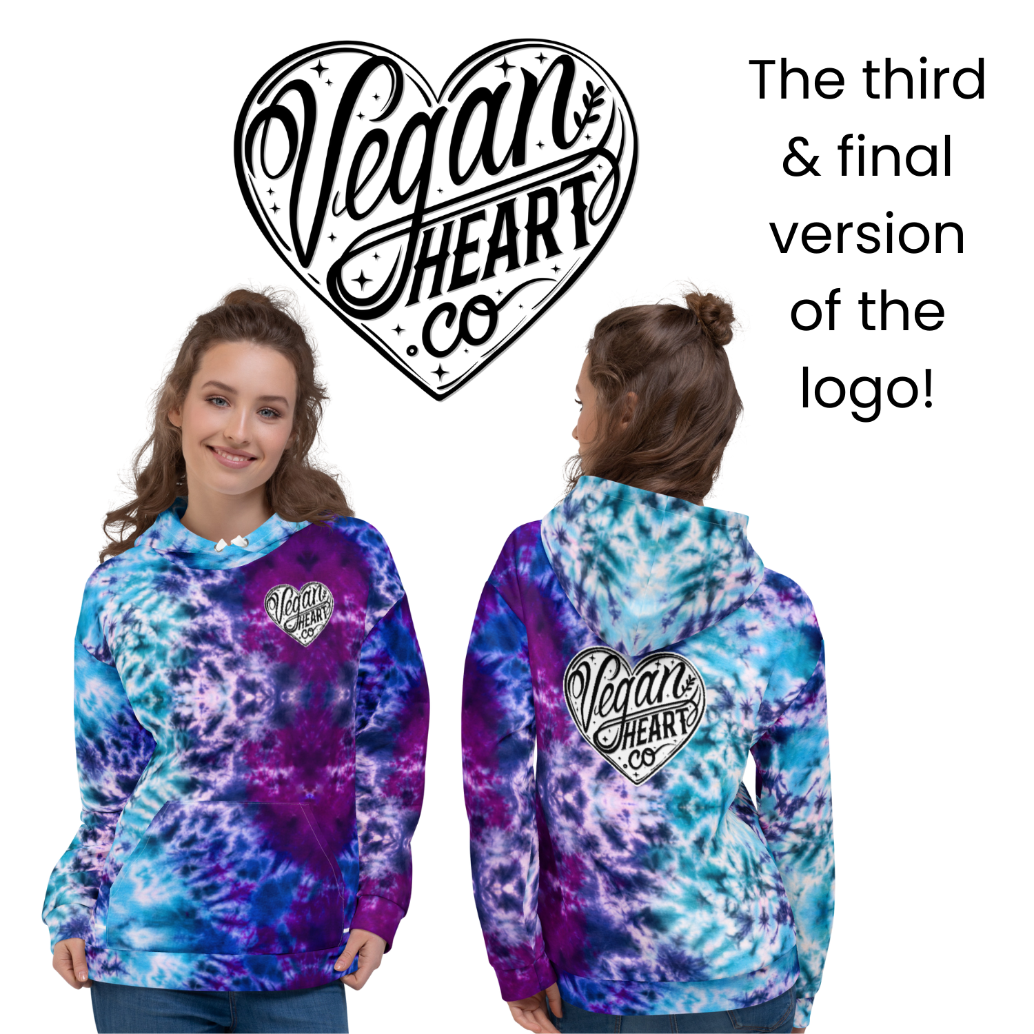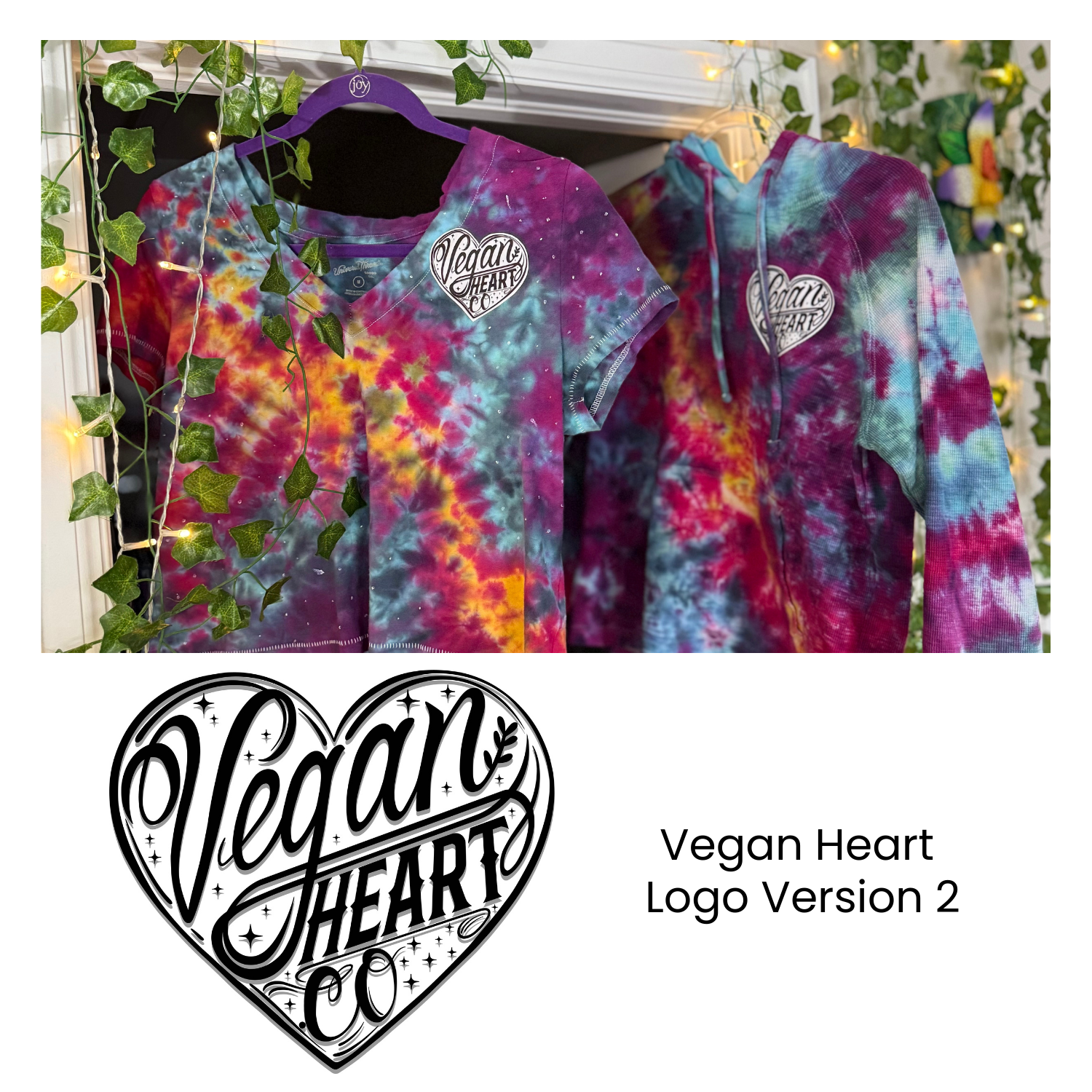 I discovered the Print On Demand model, made a new batch of tie-dye art, digitized it, edited to perfection, created my designs, upgraded the logo once more to make it more legible and the Vegan Heart Collective Clothing Line was born!