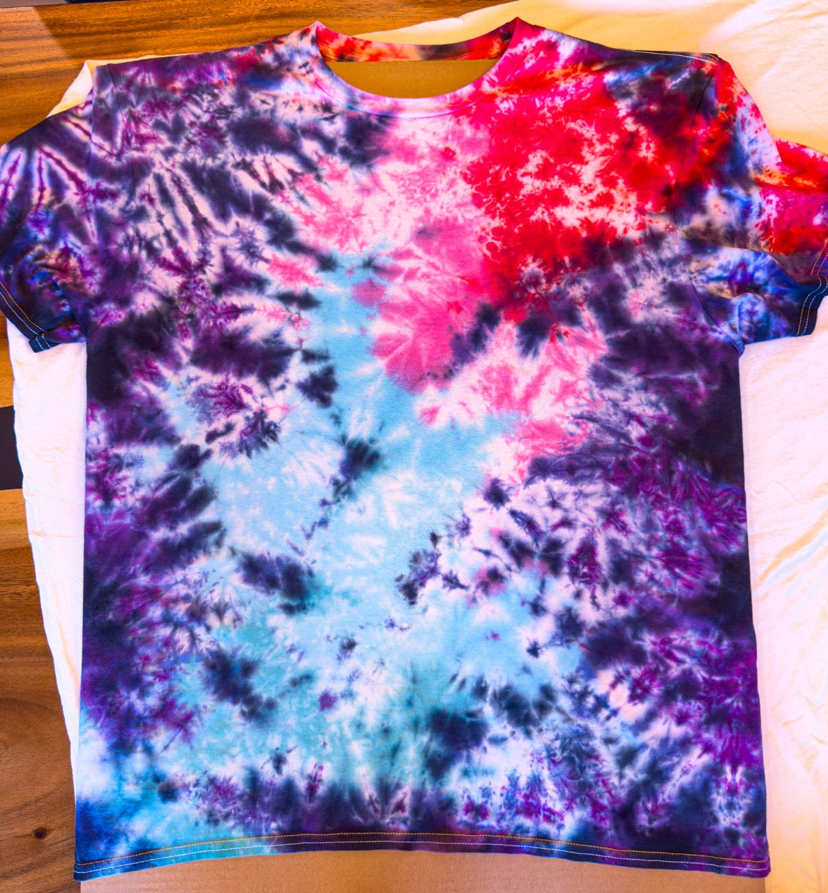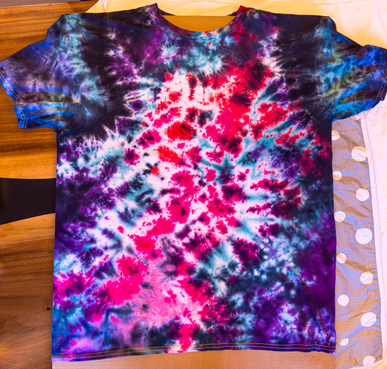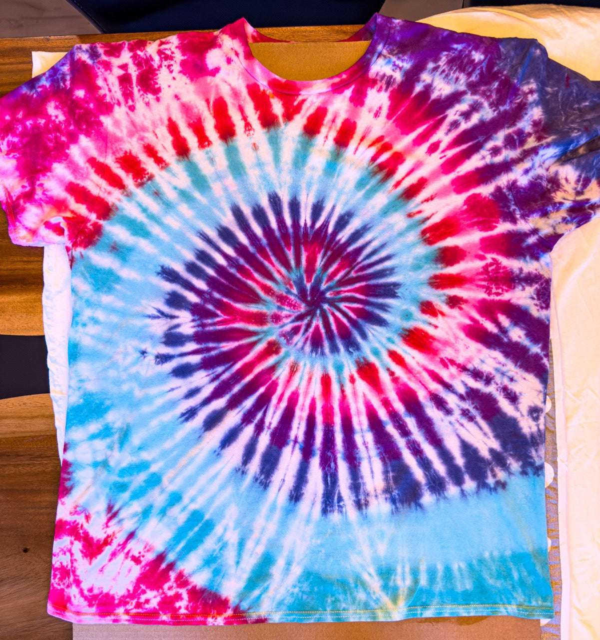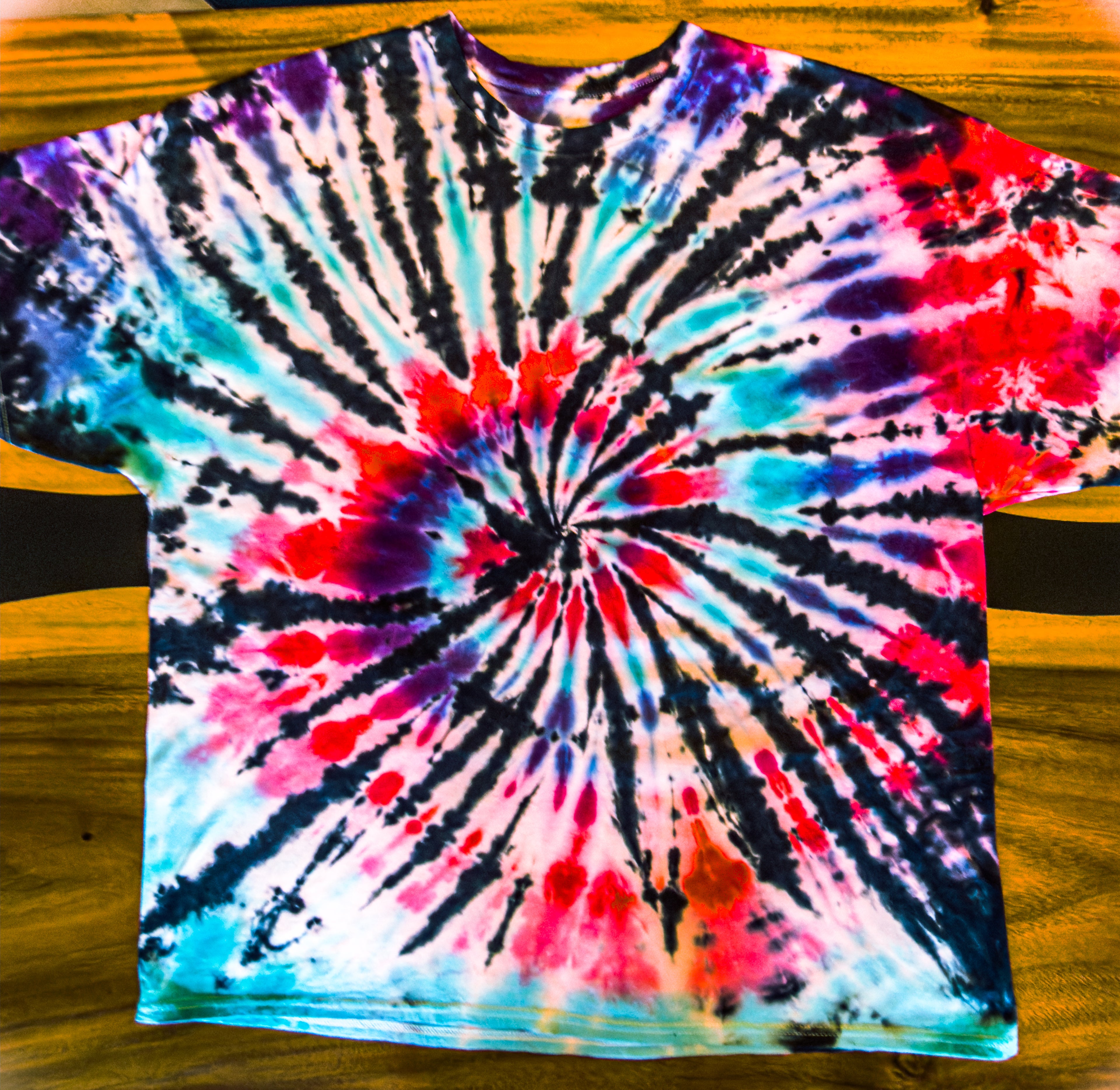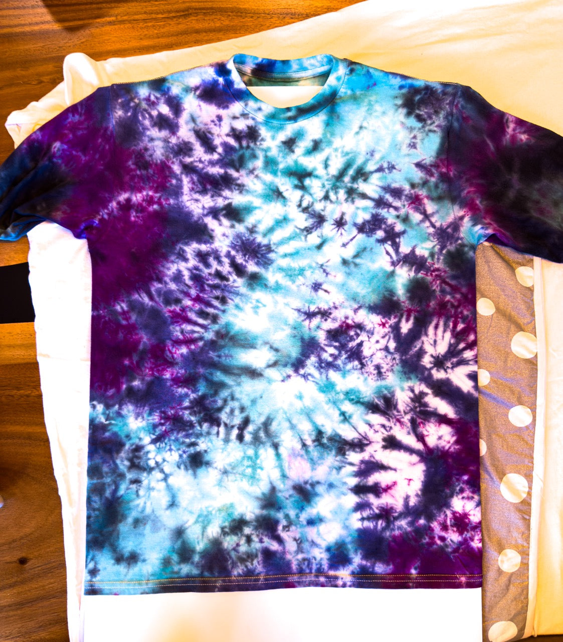 I've been creating and selling tie-dye for over 2 decades, and I wanted to incorporate my art and elevate the logo, so I hired an artist to spruce it up and made my first tie-dye batch.